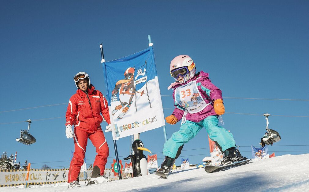 BOBO unser Pinguin begleitet Euch durch eine spannende und aufregende Woche. Speziell geschulte Kinderskilehrer/Innen bringen Euch das Skilaufen mit viel Spiel, Spaß und Sicherheit bei!