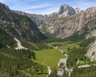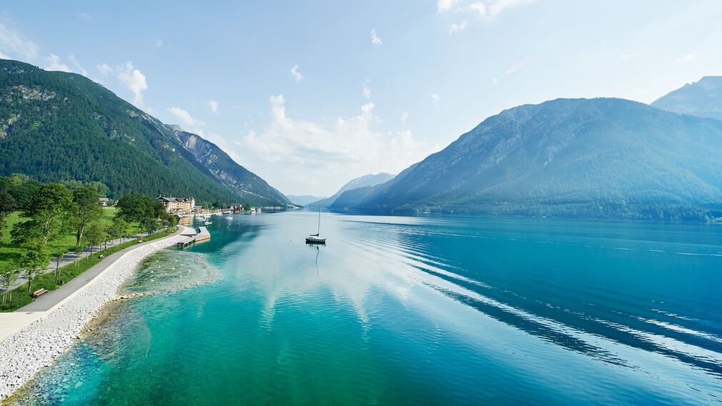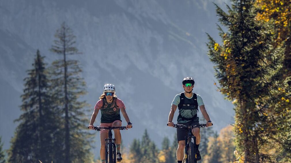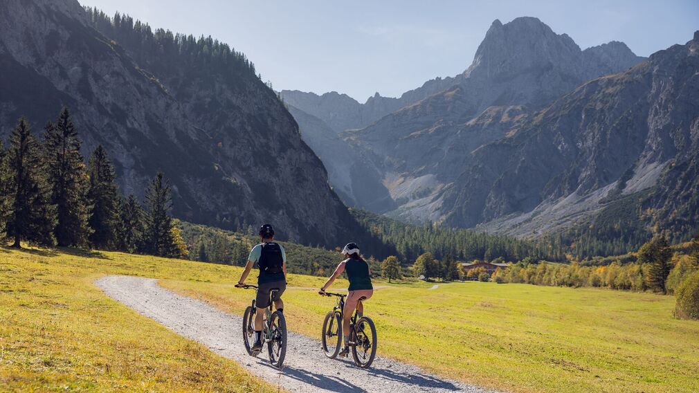 Vom Ausgangspunkt führt die Route am Radweg entlang des Achensees bis nach Pertisau. Hier biegt man bei der ersten Einfahrt links ab, fährt an der Talstation der Karwendel-Bergbahn vorbei und geradeaus weiter in die Karwendeltäler. Den Schildern folgt man dann über den Alpengasthof Falzturnalm (bewirtschaftet) zur Gramai Alm (bewirtschaftet). Von dort führt die Route zurück bis kurz vor den Eingang der Karwendeltäler und weiter über den Alpengasthof Pletzachalm (bewirtschaftet) bis zum Alpengasthof Gern Alm (bewirtschaftet). Retour zum Ausgangspunkt führt die Route auf der gleichen Strecke talauswärts.