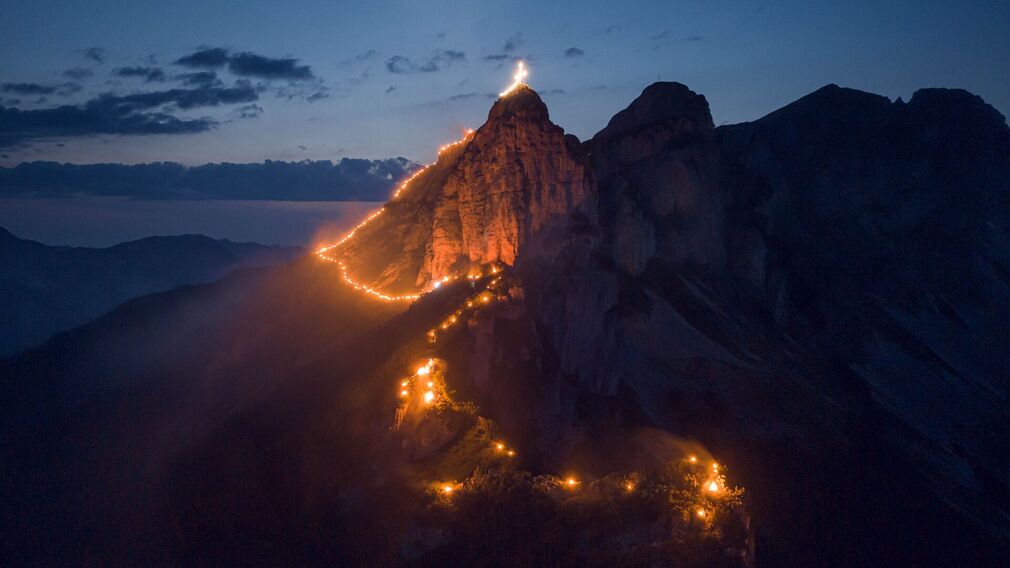 Von der Bergstation der Rofan Seilbahn führt der Weg in Richtung Dalfaz Alm. Etwa auf halber Strecke zweigt ein beschilderter Steig in direkter Linie zum Rotspitz ab. Nach dem kurzen Abstecher zum Gipfel des Rotspitzes (2.067 Meter) verläuft der Weg entlang des Grates am Kamm der Dalfazer Wände. Über den Streichkopf (2.243 Meter) geht es durch das Rote Kamml (Seilsicherung) weiter bis zum Gipfel des Hochiss (2.299 Meter). Der Abstieg erfolgt auf direktem Weg zurück zur Bergstation der Rofan Seilbahn.