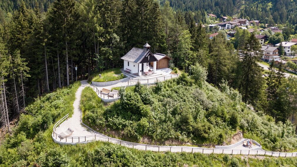 Der Wanderweg führt links von der Talstation der Rofan Seilbahn über einen breiten aussichtsreichen Weg ansteigend zur Kapelle. Der Rückweg erfolgt über den gleichen Weg oder über den Waldweg.