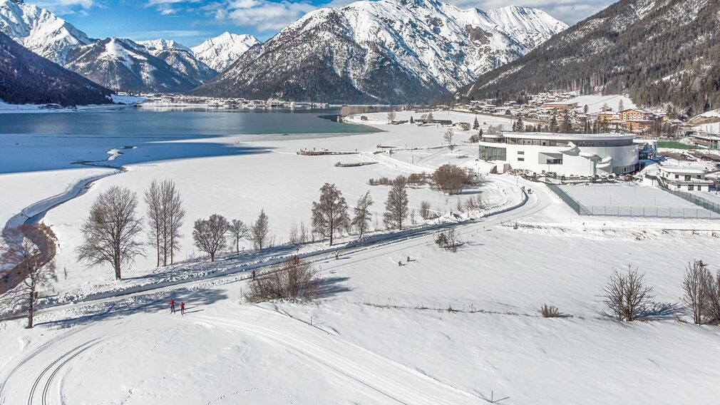 Die Loipe Maurach (M4) startet am Atoll Achensee, verläuft kurz am Ufer entlang, biegt nach links ab und quert die große Wiese in Richtung Ortszentrum. Weiter geht es entlang der Häuser, über eine Wiese, die Gleise der Achenseebahn und schließlich über die kleine Brücke, die über den Wankratzbach führt, zurück zum Ausgangspunkt.