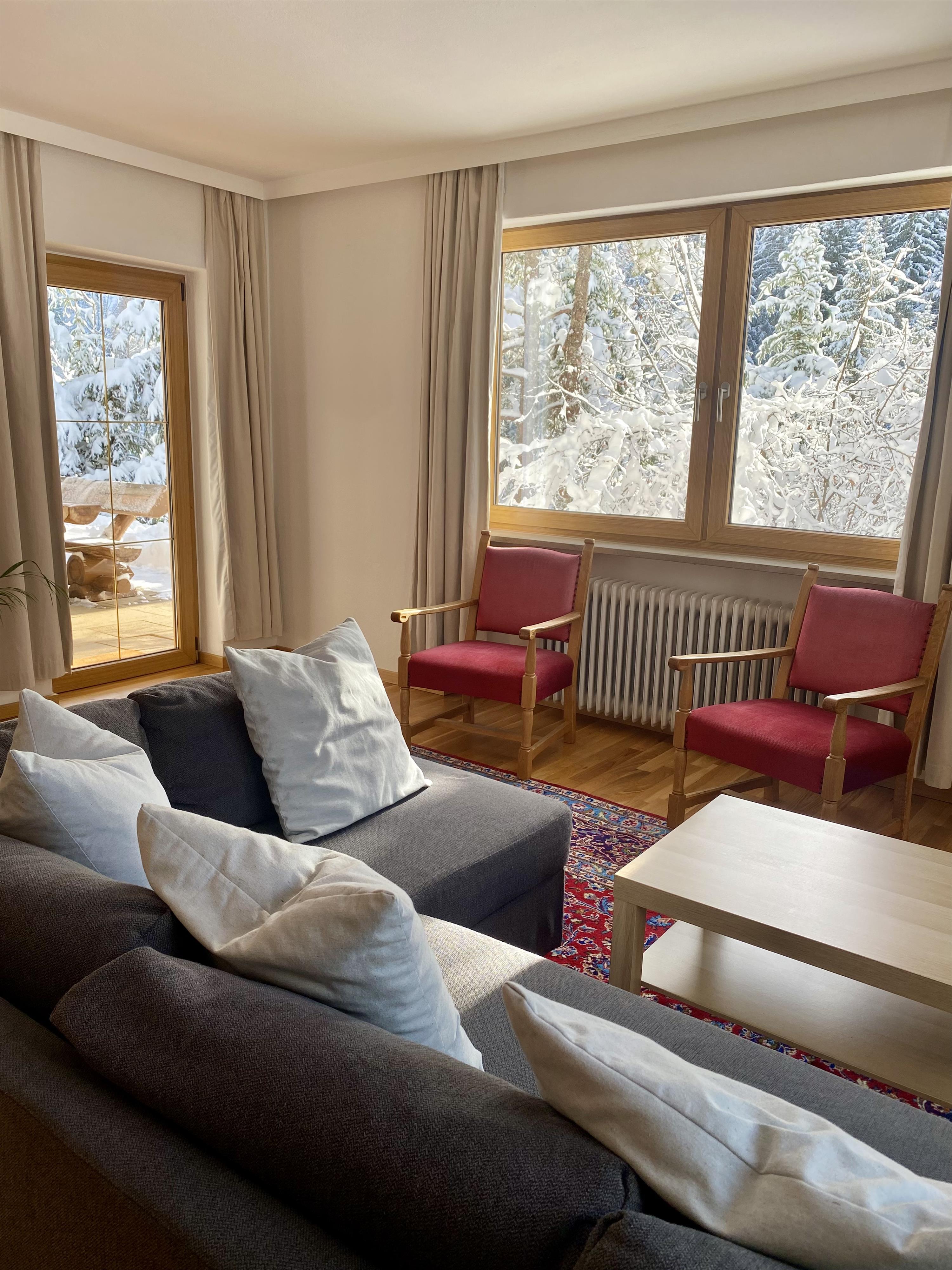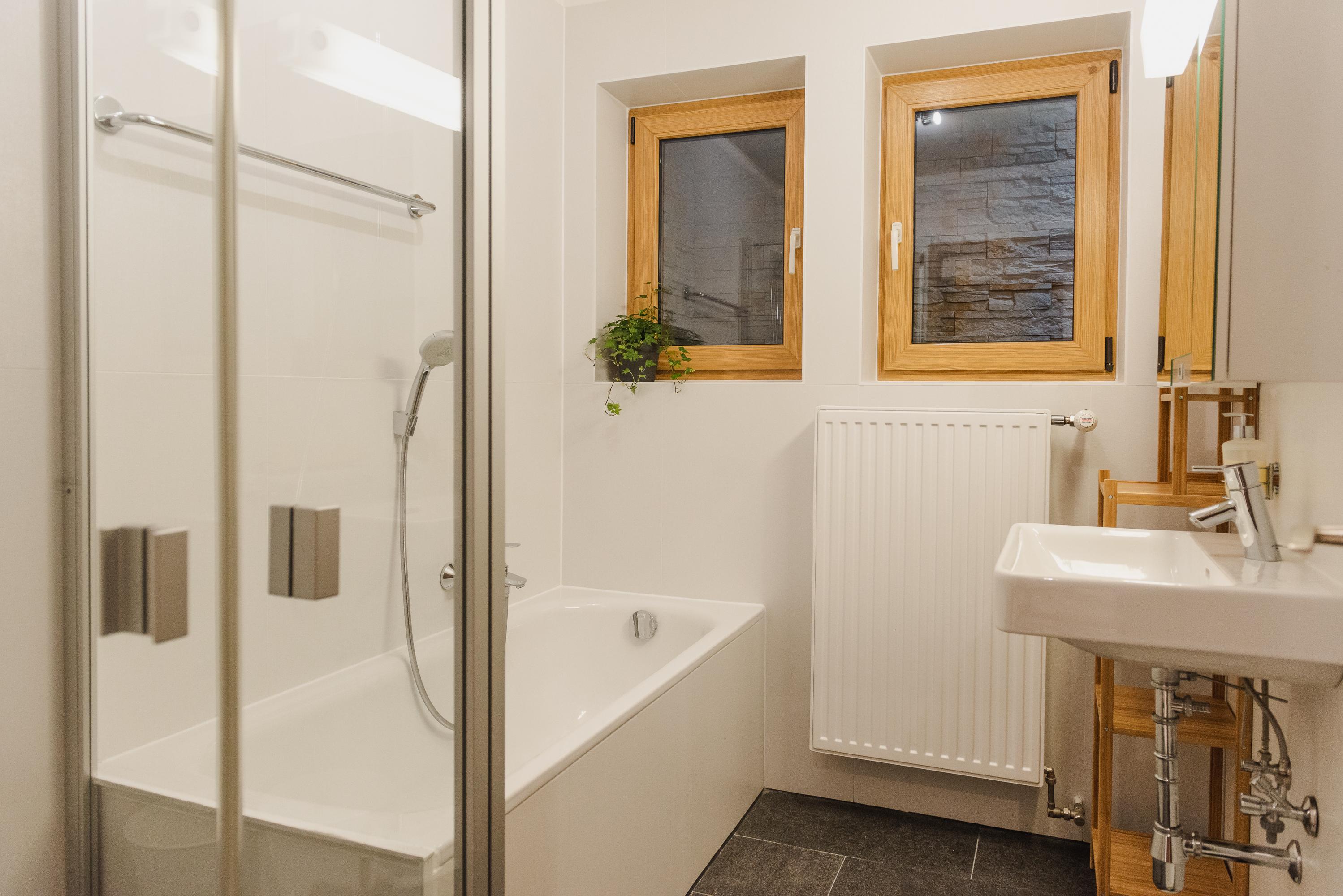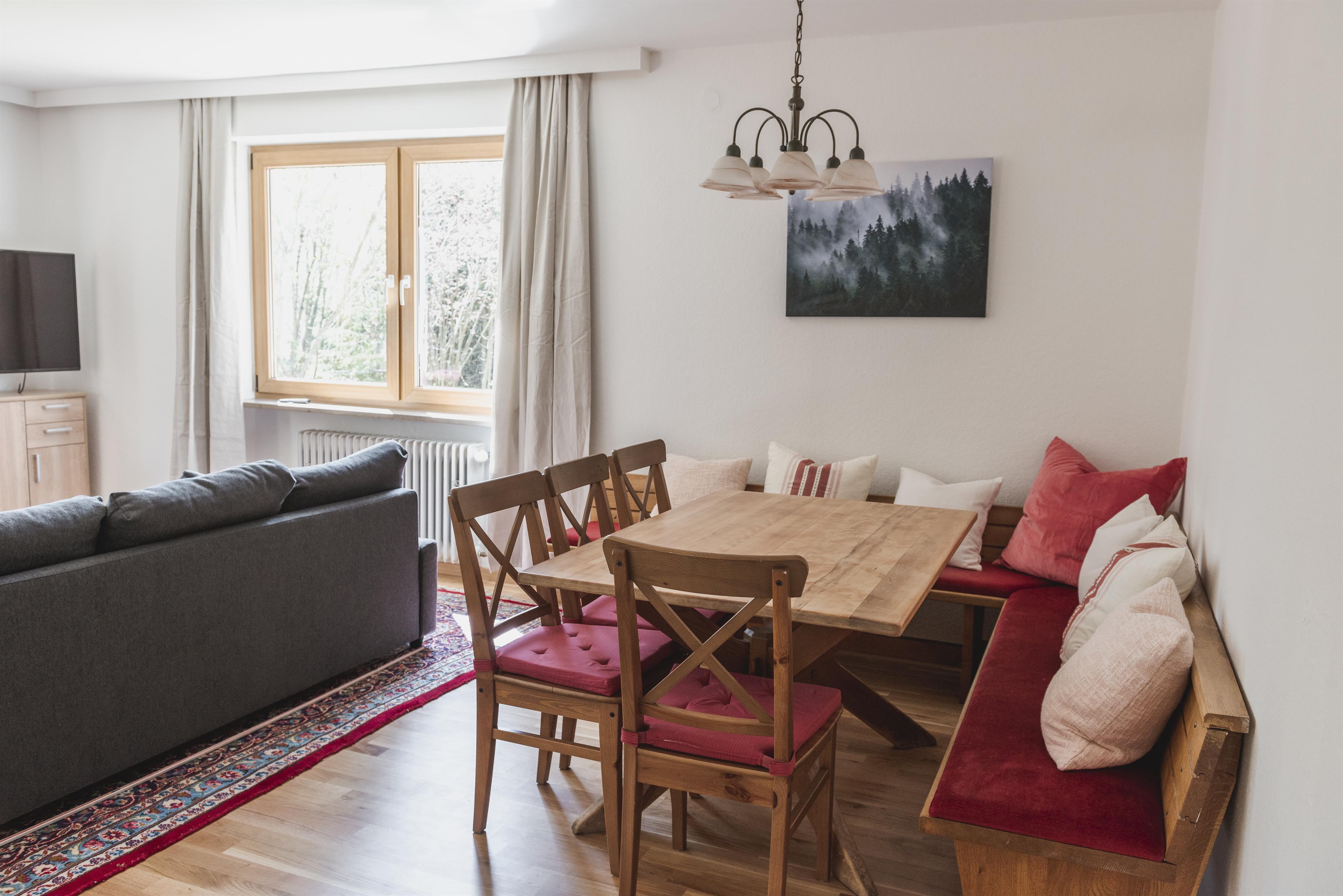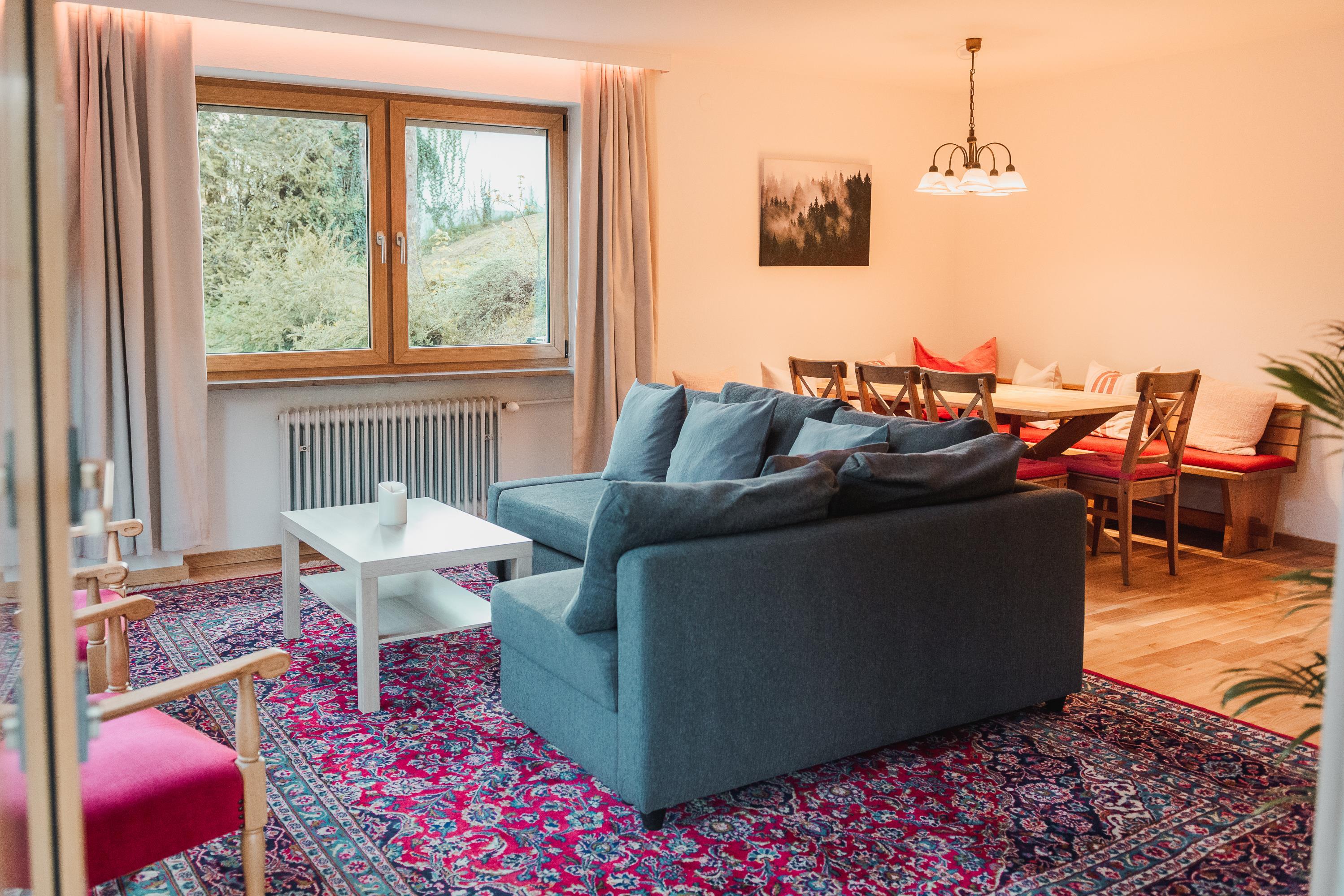 Waldgarten verfügt über eine geräumige, 95 m2 große Wohnung im Erdgeschoss. Der Zugang zur Wohnung erfolgt vom Parkplatz aus über eine separate Außentreppe. Es ist ideal für Familien oder eine Gruppe von Erwachsenen, da es zwei Schlafzimmer mit 5 Betten, eine große neue Küche und einen geräumigen Wohn- und Essbereich gibt. Im Wohnzimmer befindet sich ein Schlafsofa, auf dem 2 weitere Personen schlafen können.