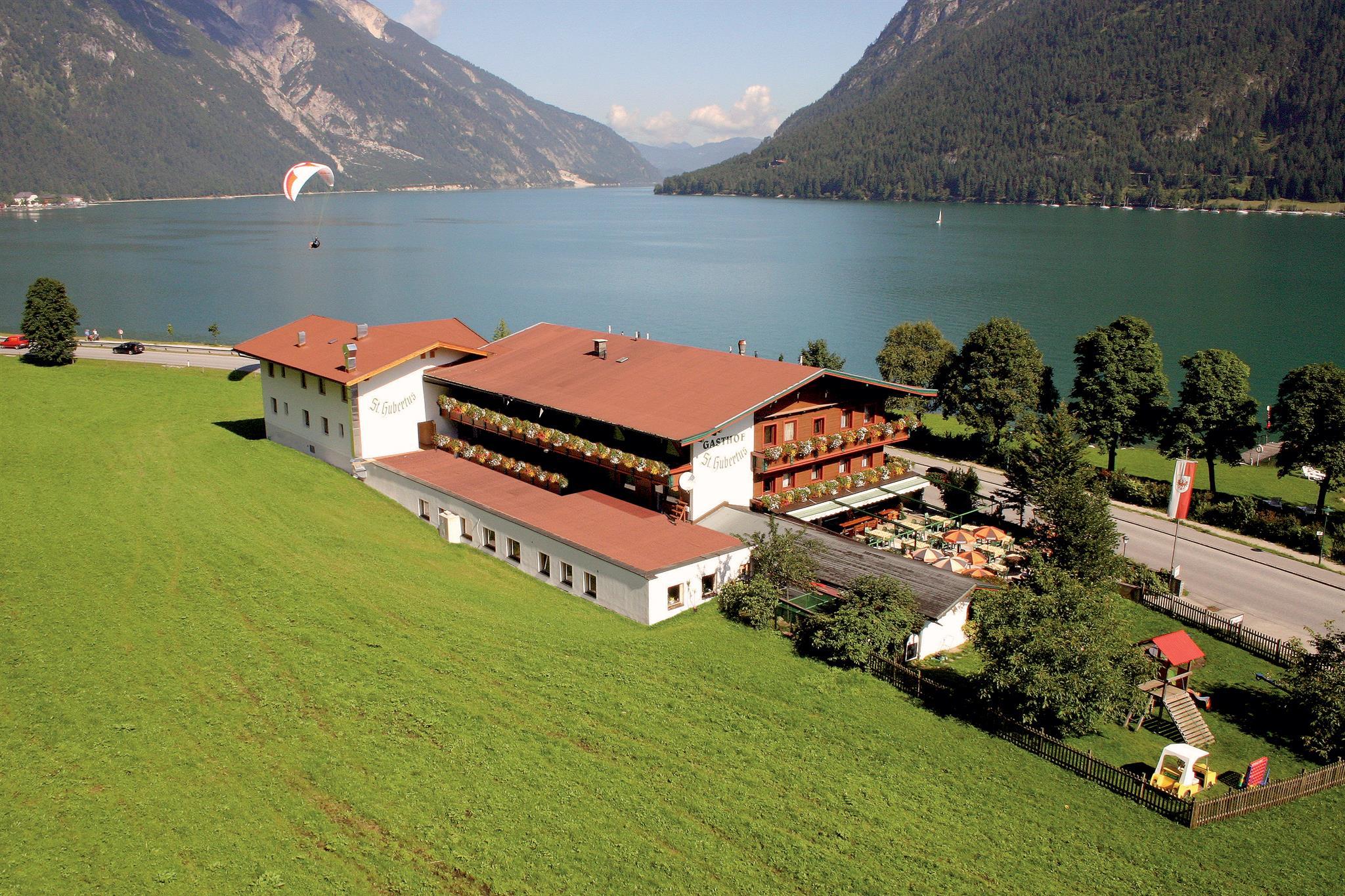 Der Gasthof St. Hubertus befindet sich direkt gegenüber dem Achensee 1 Kilometer vor der Ortseinfahrt Pertisau.