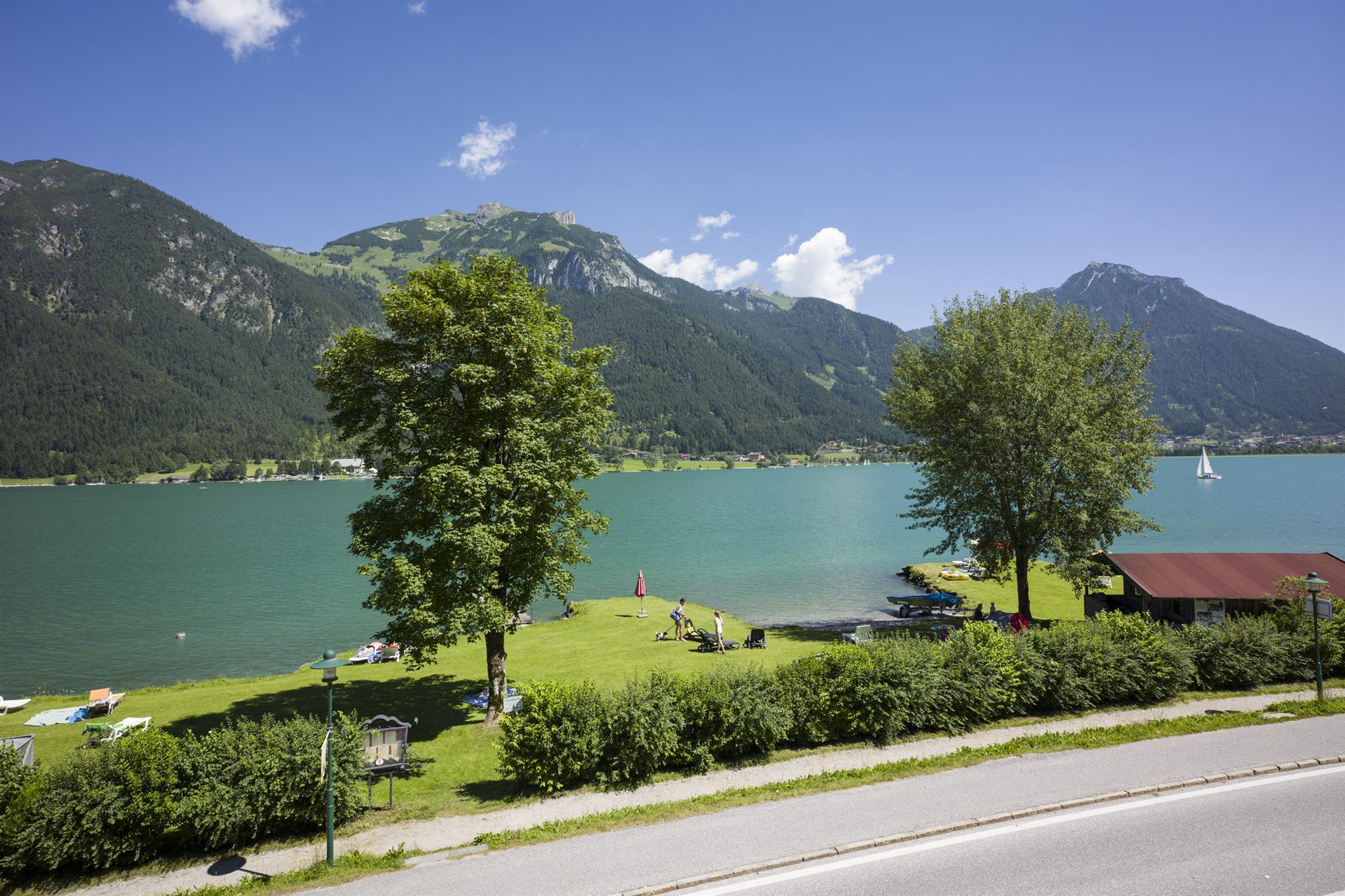 Direkt beim Gasthof St. Hubertus gibt es einen privaten Badestrand, der nur für die Gäste zugänglich ist. Hinter dem Haus verläuft die Langlaufloipe von der aus Sie in das weitläufige Loipennetz des Achensees einsteigen können. Zudem können Sie von der Skipiste direkt bis zum Gasthof St. Hubertus fahren.