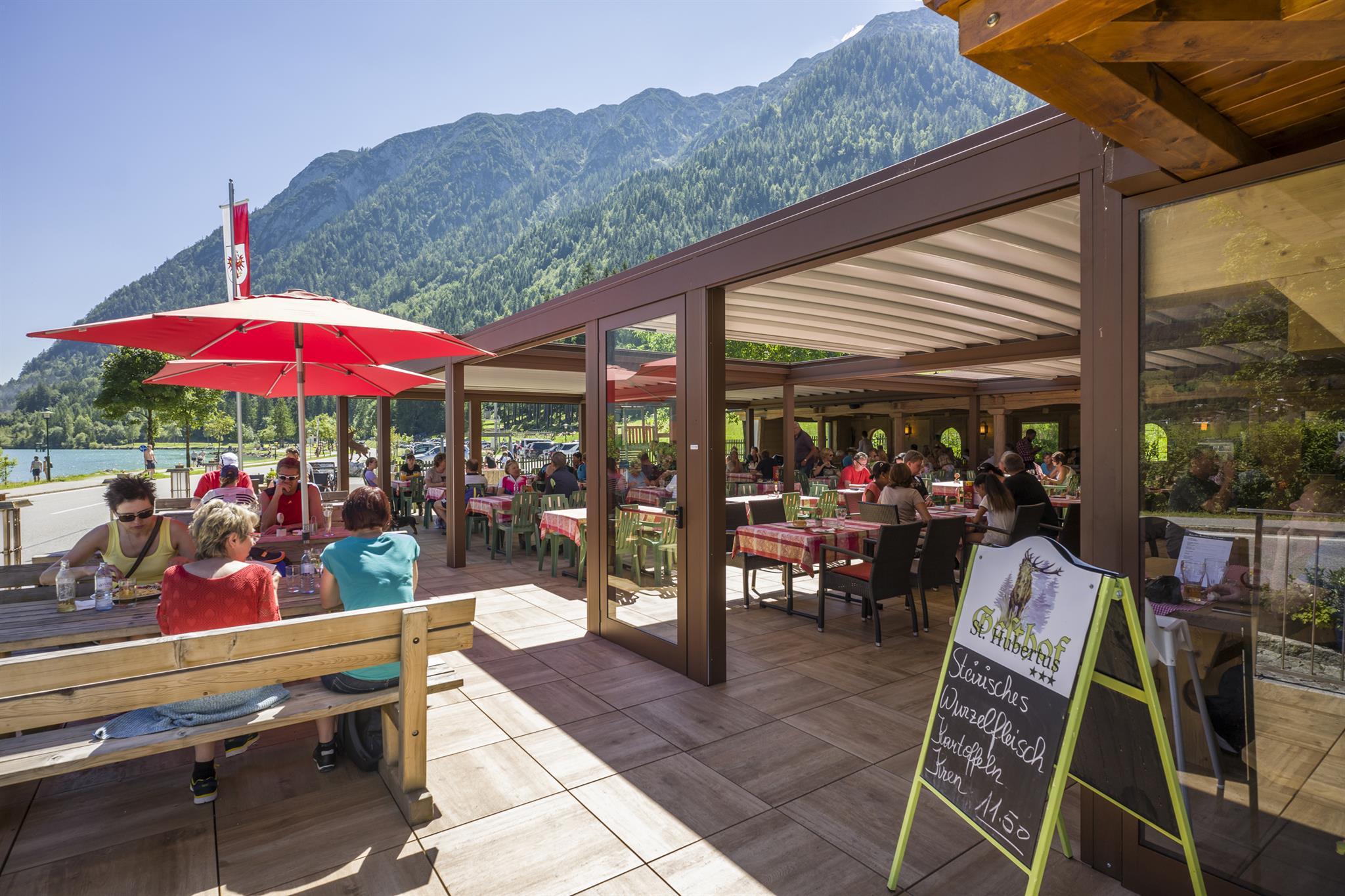 Sie können Ihr Zimmer mit Frühstück oder mit Halbpension buchen. Optional steht Ihnen unser à la carte Restaurant zur Verfügung. Das Speisenangebot reicht von typischer Tiroler Kost über Fisch- und Wildgerichte bis hin zu internationalen Gerichten. Die große Terrasse kann im Sommer automatisch überdacht und mit Seitenteilen versehen werden, damit Sie auch bei starkem Sonnenschein oder bei einem Sommergewitter die Terrasse mit Blick auf den Achensee genießen können.