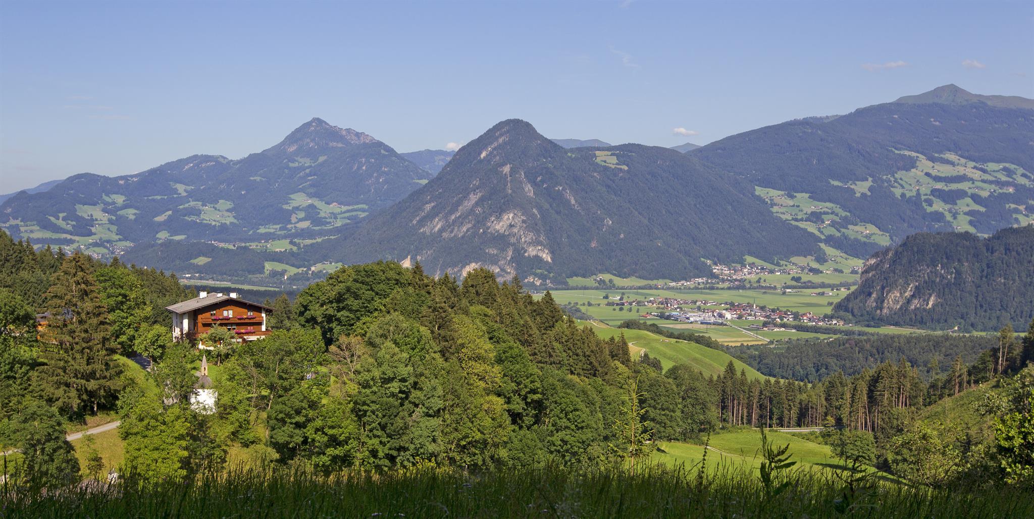 Unser familienfreundlicher Bauernhof liegt auf einer wunderschönen Anhöhe und ist von Wäldern umgeben mit einem atemberaubendem Ausblick. Unser Hof befindet sich ca. 2 Kilometer vom Ortskern entfernt, in ruhiger Aussichtslage, inmitten von Wiesen und Wäldern. Die zentrale Lage, Achensee - Inntal - Zillertal läßt Ihnen alle Möglichkeiten für Ausflüge und Tagesfahrten offen. In wenigen Minuten sind einige Badeseen im Sommer, sowie Schilifte im Winter erreichbar. Beleuchtete Rodelbahn zum nächsten Ort.