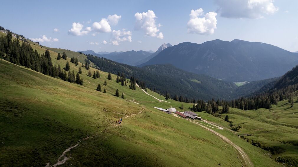 The tour starts at the car park of the Christlum lifts and leads you through the Unterautal valley to the Gröben Alm (not serviced, ca. 2 hours walking time). From there, the trail continues up to the Gröbner Hals (1,654 metres) before finally descending to the Tiroler Steinöl distillery in the Bächental valley (1,375 metres). The return is via the same route.
