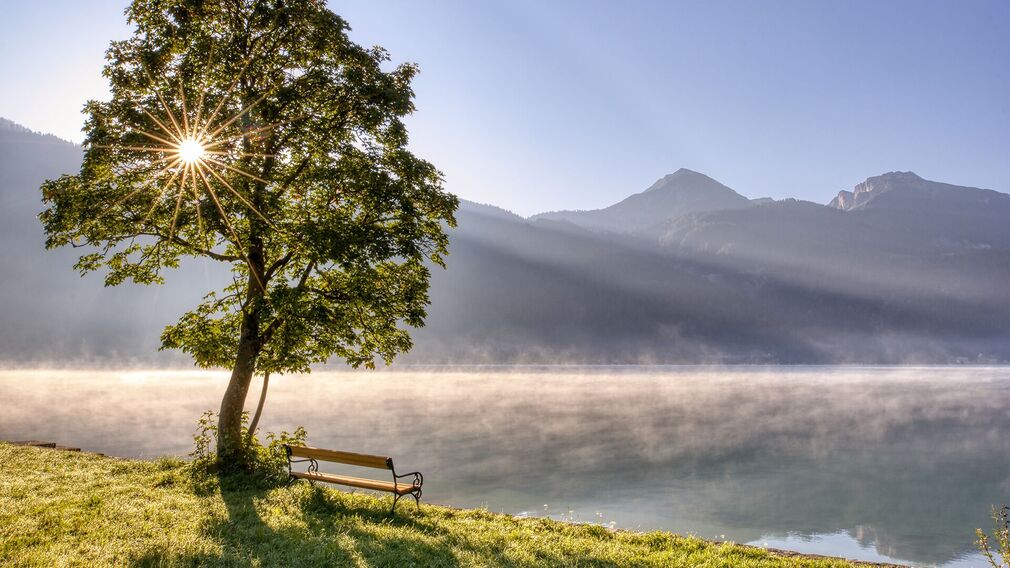 This circular walk goes around the entire village of Achenkirch. The tour starts from the car park of the Christlum lifts, which is the start and end point of the loop. Walk for ca. 100 metres to the Karwendelweg path, which leads over a high moor to the golf course. The path descends to the Blaserbach gorge, then climbs to the Falkenmoos forest path (Kalvarienkirche church). Walk past the church back to the valley until you arrive at the village road. Keep right until you reach the bus stop “Achenkirch Abzw. Steinberg”. From here, turn left and walk through the underpass and follow the signposts “Panoramaweg”. This route takes you to the other side of the valley of Achenkirch and back to the lake (signposts “Panoramaweg“ and “Wanderweg zum See“). Once you have arrived at the Fischerwirt, walk past the Alpen Caravan Park Achensee. Follow the signposts “Schrambachalm” and “Ortsmitte” on beautiful paths alongside meadows. The last section runs along the edge of the forest past the Hotel Das Kronthaler and back to the starting point.