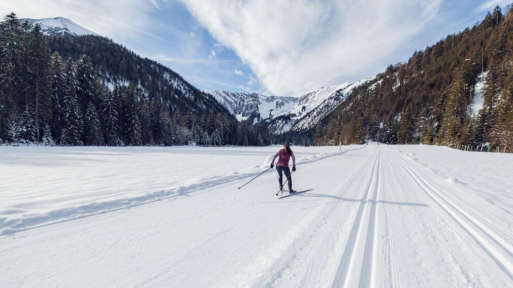 The Oberautal lake trail is a cross-country skiing trail that sees hardly any elevation change. The easy trail leads to Lake Achensee, past the snowkite terrain and the Alpen Caravan Park Achensee (lakeshore Achenkirch), and continues through a sparse forest to the Oberautal valley. The scenic tour leads back to the starting point past the Schrambacherhof.