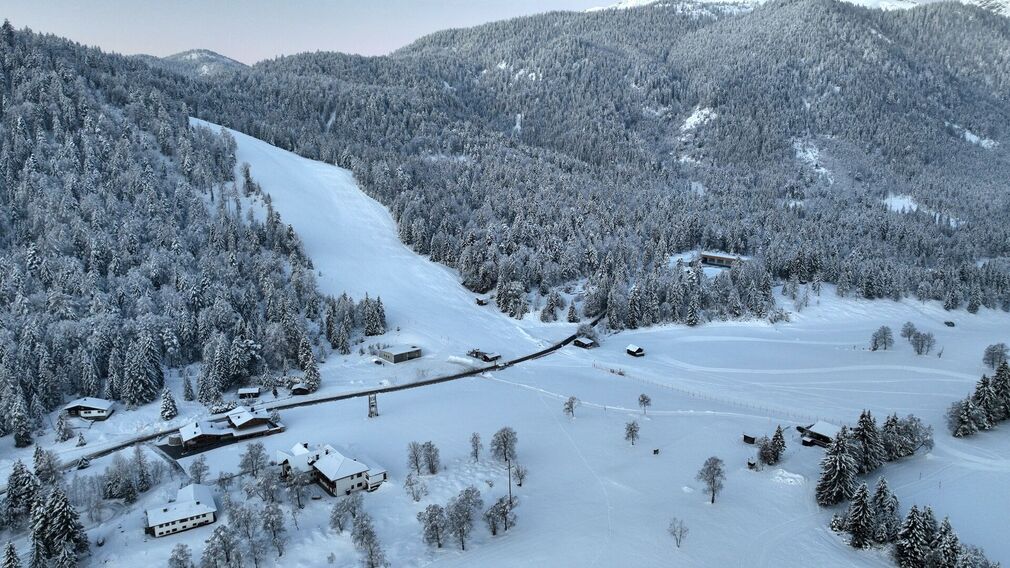 This snowshoe tour, which leads mostly through forest terrain, starts from the Liftstüberl car park. Walk uphill for about 200 metres along the right side of the ski slope. The route leads up to the Gfaßsattel (wayside cross), walking time ca. 30 minutes. Follow the signs in the direction of (Steinberger) Kotalm - Unutz. After ca. 1.5 hours, you arrive at the Kotalm (not serviced). The return is via the same route. Alternatively, walk left below the decrepit Kotalm and follow the trail to Steinberg (see signposts). After ca. 1.5 hours, you reach the forest road. Turn right and head back to the car park.